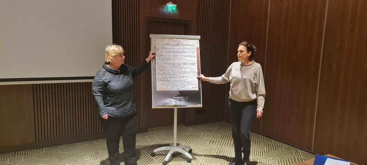 „ Mes mokomės ne vieni – mes mokomės kartu!“ – su tokiu šūkiu sausio 27 d. Vilniaus Sofijos Kovalevskajos progimnazijos ir Liepkalnio mokyklos pedagogai susitiko tęstiniuose mokymuose ,, Ugdymo kokybės gerinimas taikant kolegialų grįžtamąjį ryšį“. Jaukioje „Radisson BLU Hotel Lietuva“ aplinkoje komandos dirbo grupėse ir gilinosi į pamokų stebėjimo įrankius: klasės valdymą, mokymosi aiškumą bei vertinimą, bendrųjų programų įgyvendinimą . Taip pat aptarė , kokius Tūkstantmečio mokyklų (TŪM) programos aspektus galima stebėti pamokose . Mokymų dalyviai ne tik diskutavo, bet ir praktiškai pasiruošė kolegialiam grįžtamajam ryšiui (KGR) bei kolegų pamokų stebėjimui.