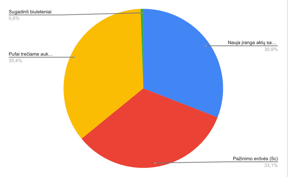 Balsavimas vyko lapkričio 28 d., mokyklos bendruomenė aktyviai rinko labiausiai patikusią idėją. Suskaičiavus rezultatus, paaiškėjo, kad daugiausia balsų – 35,4% – surinko 7c klasės idėja „ Pufai trečiame aukšte“ .