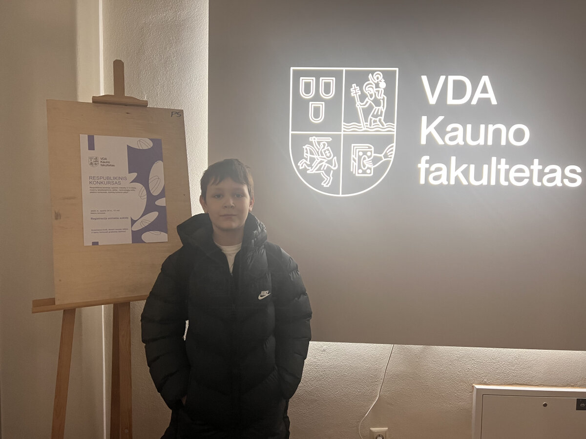 Sveikiname 6b klasės mokinį Aleksandrą L. respublikiniame konkurse „Aplinką kuriame patys“ laimėjusį 2-ąją vietą! Spalio 31 d. vykusioje apdovanojimų ceremonijoje Vilniaus dailės akademijos Kauno fakultete jo darbas sulaukė ypatingo dėmesio ir padėkos žodžių už išskirtinį kūrybiškumą, atkaklumą ir originalų požiūrį.
