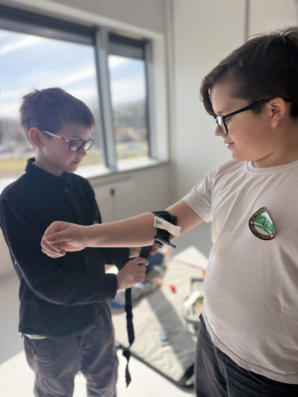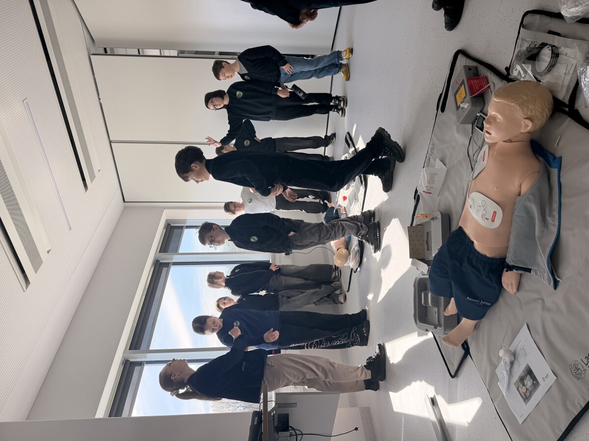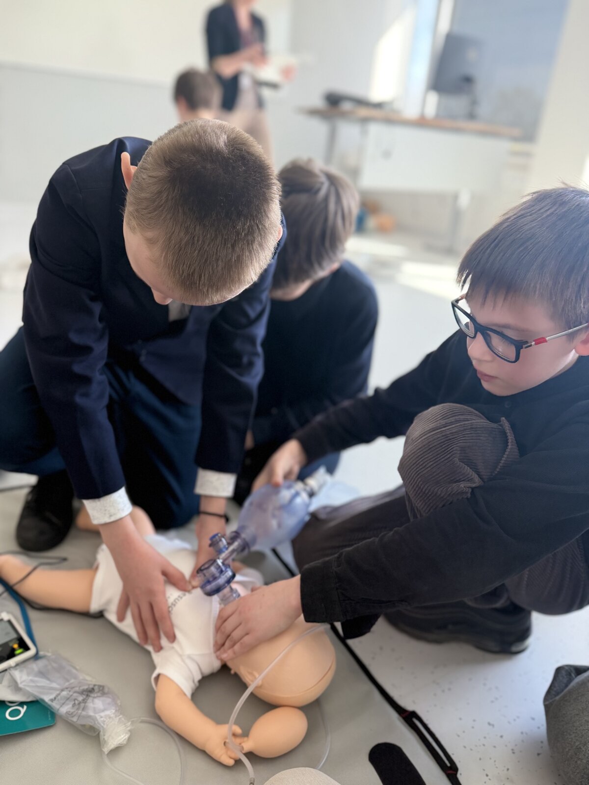 Vizito metu jie dalyvavo pirmosios pagalbos mokymuose, kuriuose susipažino su gyvybiškai svarbiais veiksmais nelaimės atveju ir praktiškai išbandė pagrindinius pagalbos teikimo principus. Mokymus inicijavo ir organizavo klasės vadovė Julija Zaiceva kartu su skubiosios medicinos gydytoja Renata Juknevičiene, kuri profesionaliai ir įtraukiai pristatė pirmosios pagalbos svarbą bei pasidalijo realiomis situacijomis iš medicinos praktikos.