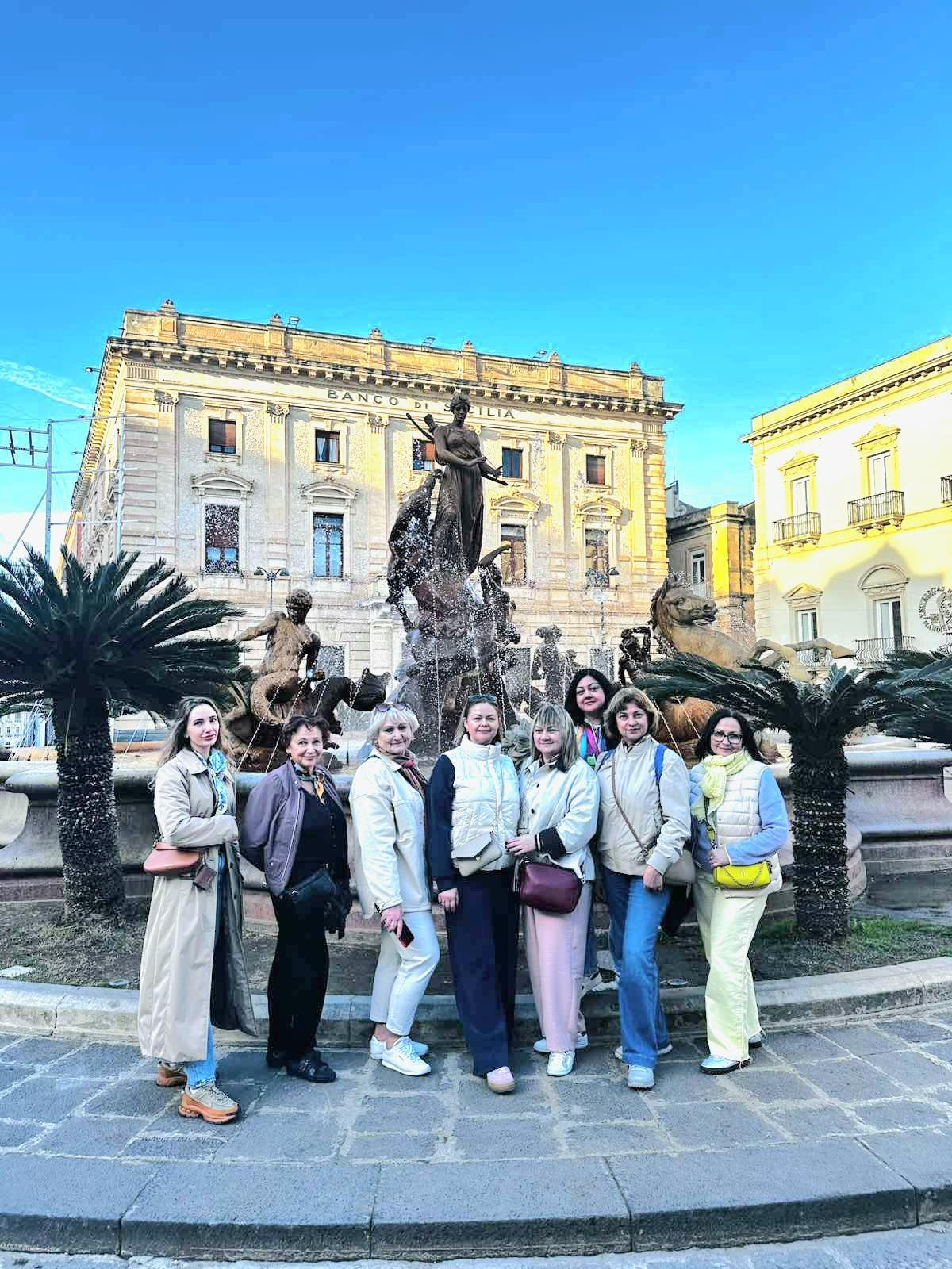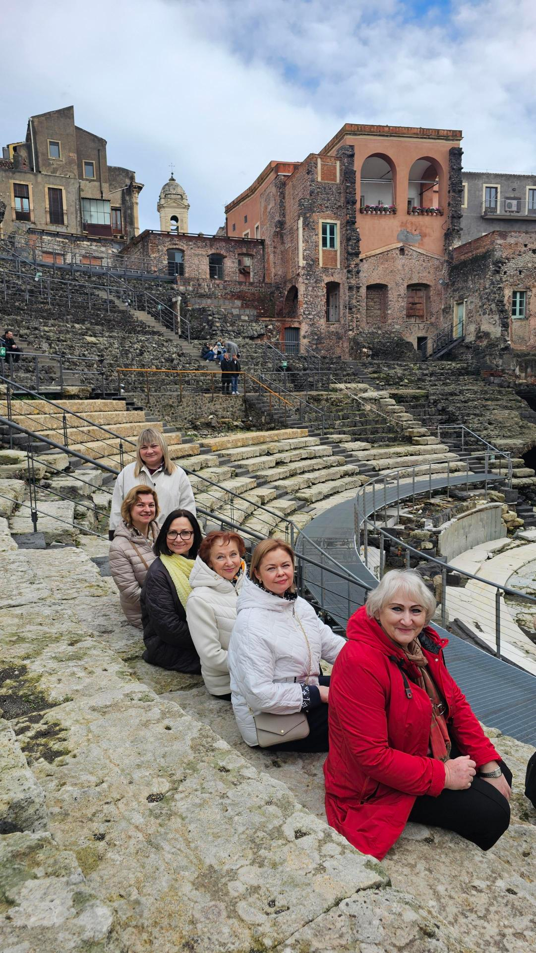 Kelionė po Siciliją buvo kupina istorijos ir kultūros pėdsakų. Katanijoje mokytojai grožėjosi į UNESCO paveldo sąrašą įtrauktu senamiesčiu, pastatytu iš juodai pilko vulkaninio akmens, bei didinga normaniškąja Katedra, skirta miesto globėjai šv. Agotai, dalyvavo jos garbei skirtoje šventėje. Taormina užbūrė antikiniu teatru ir nepakartojamais vaizdais į Jonijos jūrą. Sirakūzai- antikinės kultūros ir mokslo lopšys, kuriame savo pėdsakus paliko matematikas Archimedas, filosofas Platonas bei dramaturgas Aischilas-atvėrė didžiausio antikinio teatro Sicilijoje erdves, romėnų amfiteatro griuvėsius, Dioniso ausies olą, garsėjančią efektinga akustika. Didžiausią įspūdį paliko galingas ir gyvas Sicilijos simbolis Etna– šalia ugnikalnio ypač stipriai pajuntama gamtos jėga ir laiko tėkmė.