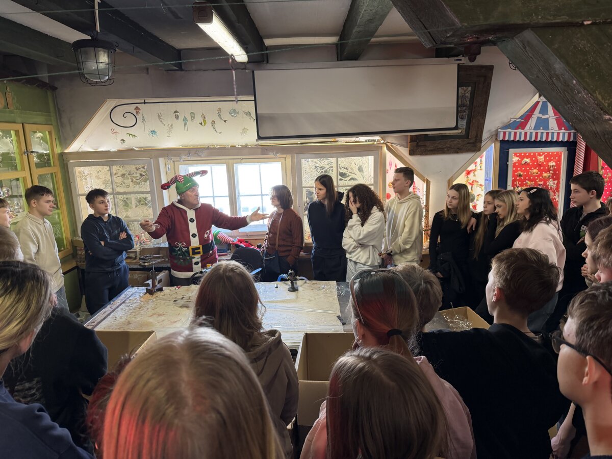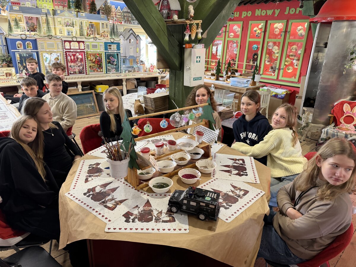 Vėliau vykome į kalėdinių žaisliukų manufaktūrą, kur susipažinome su stiklo žaisliukų gamybos procesu ir patys išbandėme kūrybines veiklas.