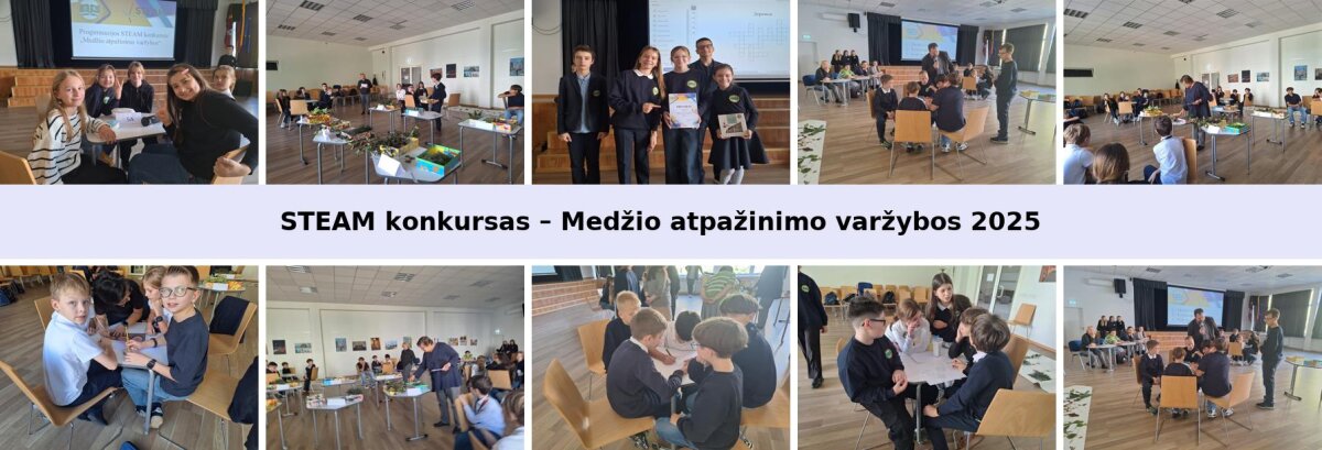 Spalio 8 dieną mokykloje vyko STEAM konkursas „Medžių atpažinimo varžybos“, kuriame dalyvavo 5–6 klasių komandos. Konkurso metu mokiniai turėjo atlikti tris užduotis: