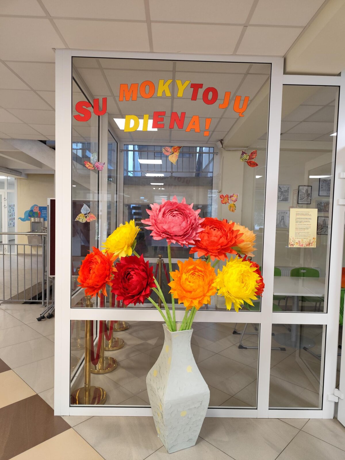 Spalio 3 dieną, minint Tarptautinę mokytojo dieną, mokykloje nuo pat ryto tvyrojo šventinė nuotaika. Mokiniai sveikino savo mokytojus, dovanojo jiems šypsenas, muziką ir šokį.