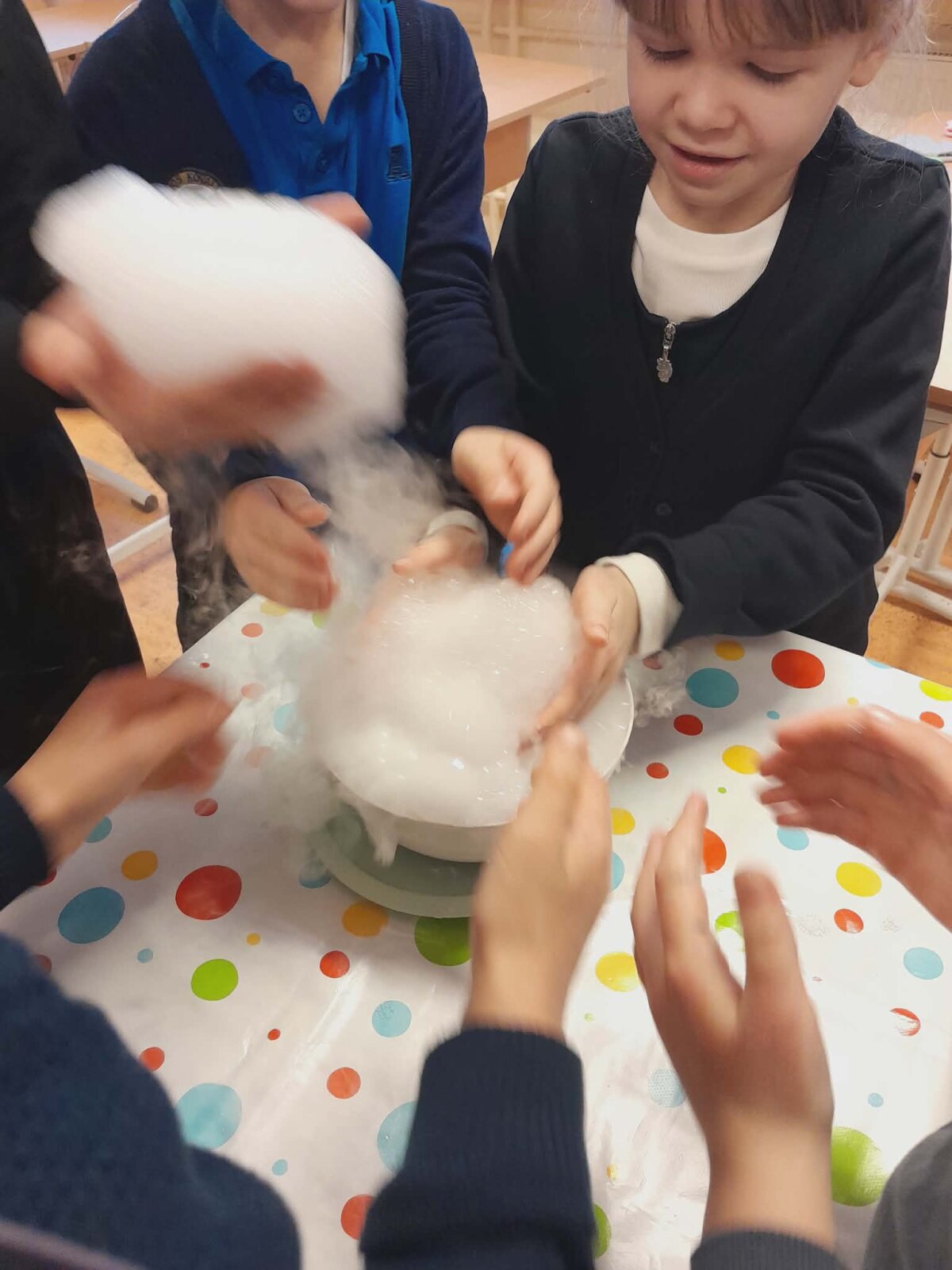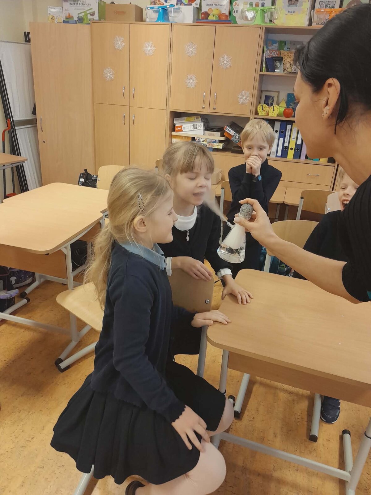 Vasario 6 d. 2a, 2b ir 2c klasės mokiniai dalyvavo Sauso ledo ir ugnies edukacijoje pagal STEAM programą. Mokiniai trumpam tapo mažais mokslininkais. Jie savarankiškai atliko eksperimentus su ledu, garais ir burbulais. Ši edukacinė veikla suteikė vaikams ne tik gerų emocijų, bet ir žinių bei naujų patirčių.