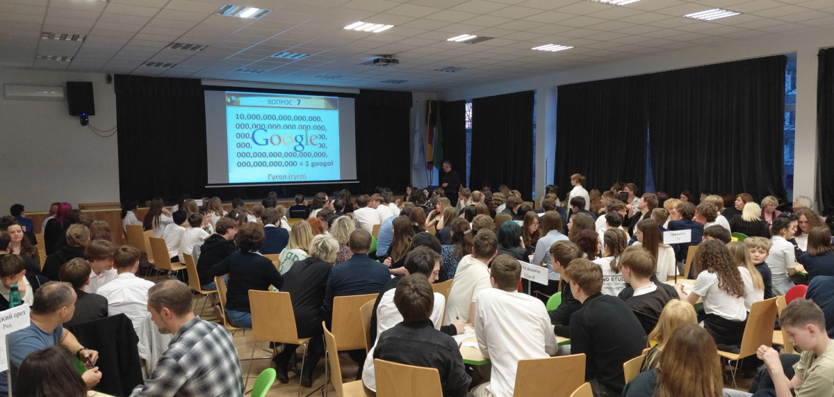 Penktadienį, kovo 20 dieną, vyko intelektualinis žaidimas. Šiais metais jame dalyvavo 34 komandos, sudarytos iš mokinių, mokytojų ir tėvų. Visos komandos žaidė vienu metu. Salėje susirinko apie 270 žmonių.