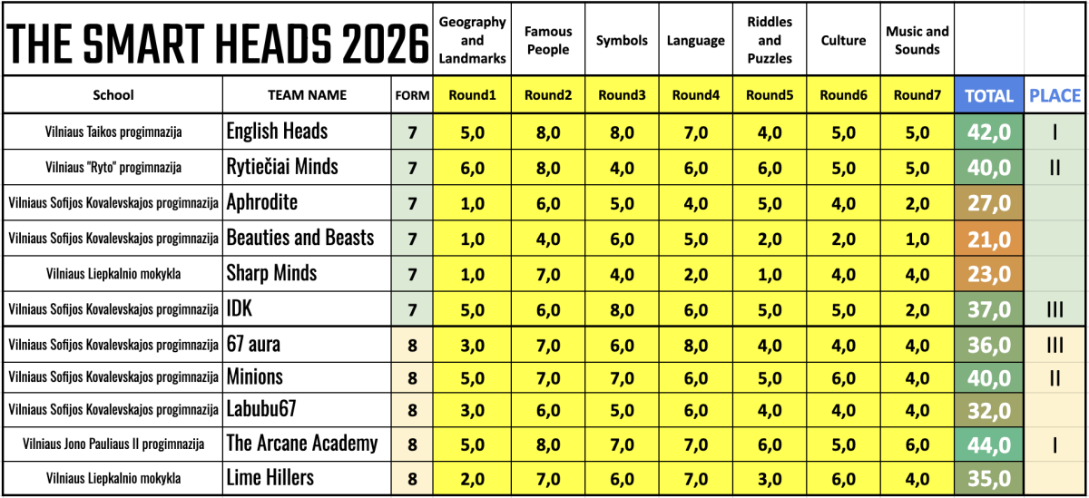 Vilniaus miesto anglų kalbos ir kultūros protmūšis „The Smart Heads“ 2026