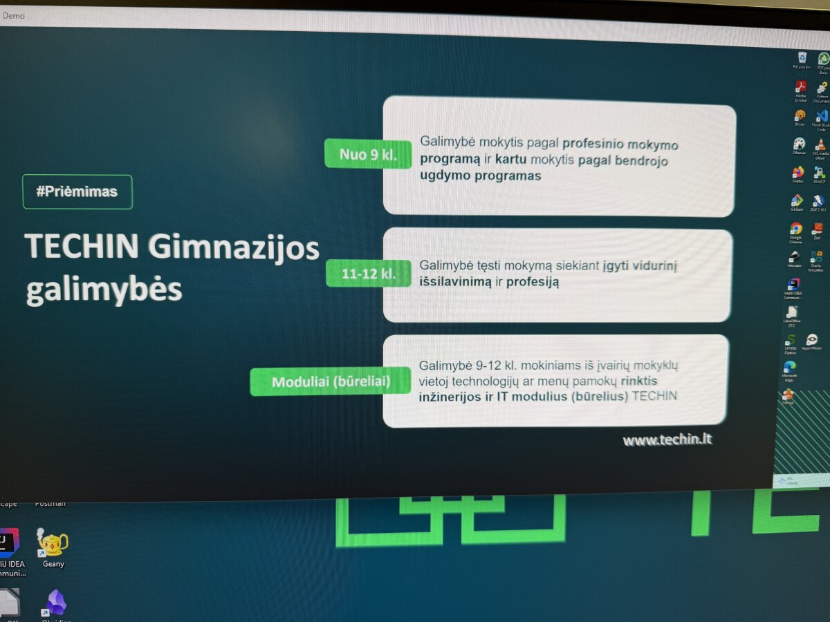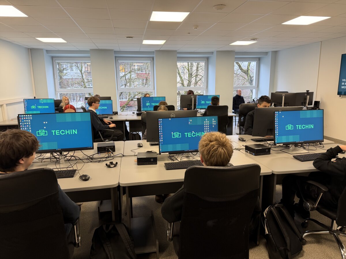 8 klasių mokinių komanda apsilankė Vilniaus technologijų ir inžinerijos mokymo centre (TECHIN). Pamokoje „Ar galiu būti programuotoju?“ jie susipažino su interneto svetainių kūrimo pagrindais – nuo idėjos iki galutinio produkto, sužinojo, kaip kuriama tinklapio struktūra naudojant HTML, kaip dizainui taikomas CSS ir kaip interaktyvumui suteikti naudojamas JavaScript. Po to patys sukūrė paprastus tinklalapius ir pristatė savo darbo rezultatus.Taip pat mokiniams buvo pristatytos TECHIN siūlomos ugdymo programos 9–12 klasėms.