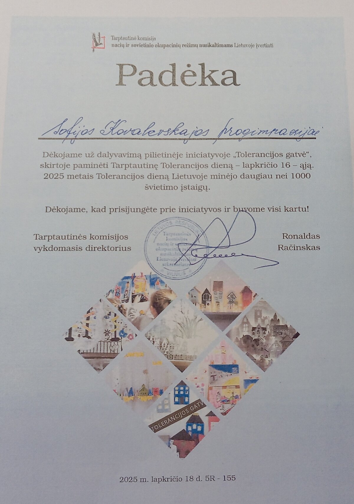 Progimnazijoje paminėta Tolerancijos diena. Lapkričio 18d. vyko akcija ,, Tolerancijos gatvė 2025". 1 ir 2 klasių mokiniai sužinojo princo Tolerain istoriją, kalbėjo kaip jie stengiasi būti tolerantiški vieni kitiems ir 7-okams padedant , sukūrė spalvingą Tolerancijos gatvę , kurioje skirtinguose nameliuose gyvena ir draugiškai sutaria kaimynai.